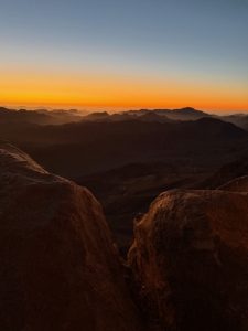 Katherine says “we trekked on camel and on foot to see the sunrise on Ash Wednesday, the beginning of Lent. It was curious riding camels in the dark up a stony terrain. The stars were so bright and I saw a shooting star which seemed really close. The sunrise was beautiful and the view amazing. Very moving to be on this sacred site where Moses received the Ten Commandments from God”.