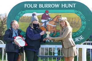 Parnalls Solicitors Katherine Flashman Kitson presenting the prize in the John Parnall Memorial Cornish National Men’s Open race to the owners of winning horse Hearts Corner. Katherine says “ We are so proud to be sponsors of this great race in honour of the late John Parnall and to be able to support the Point to Point racing. Well done to Hearts Corner, beautiful horse, lovely owners snd a great jockey. And my first winning bet of the day. “
