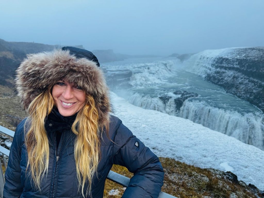Katherine Flashman Kitson at the Gullfoss Waterfall and Golden Circle in Iceland